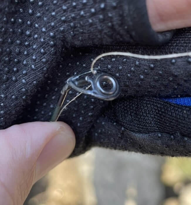 ラインがガイドを通っておらず、ガイド脇の隙間をくぐってきています。
