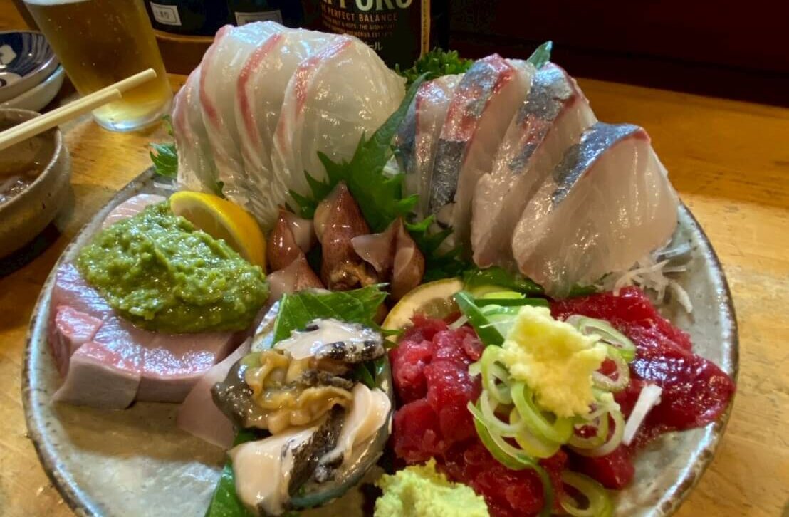 左に映っているブリには葉ニンニクが乗せられており、高知の伝統的な調味料なのだとか。なぜこの食べ方が全国に普及していないのか、不思議なくらいです。