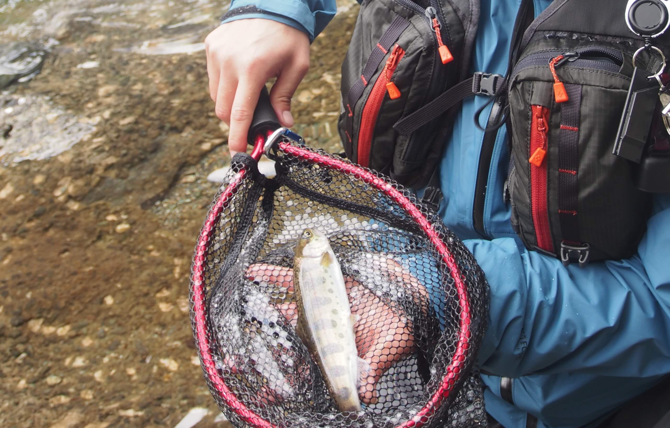 という考えに傾いていき、こだわったプライドはわずか5分で崩壊し、毛針竿に持ち替えます。友人が見ていないスキに毛針竿に持ち替えたのは、彼に指摘されたことがきっかけで変更したとバレたくなかったからです。